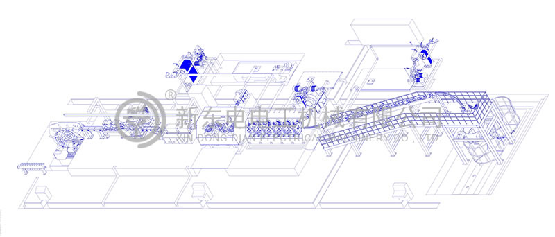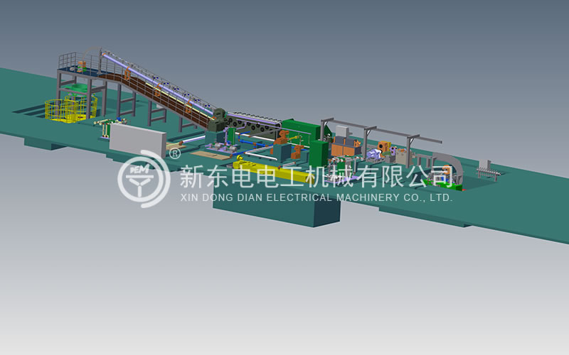 本生產(chǎn)線主要由四輪式連鑄機(專利號:ZL 2009 2 0037329.X; 澆鑄機用零點澆鑄裝置,專利號:ZL 2009 2 0037330.2)、校直機、前牽引機、滾剪機、鑄坯過渡支撐裝置、喂料機、粗軋機、精軋機、鋁桿冷卻淬火裝置、鋁桿甩桿成圈裝置、收線小車及收線筐裝置、連鑄連軋生產(chǎn)線電氣控制系統(tǒng)、連軋機潤滑油系統(tǒng)、連軋機乳液循環(huán)系統(tǒng)等組成。