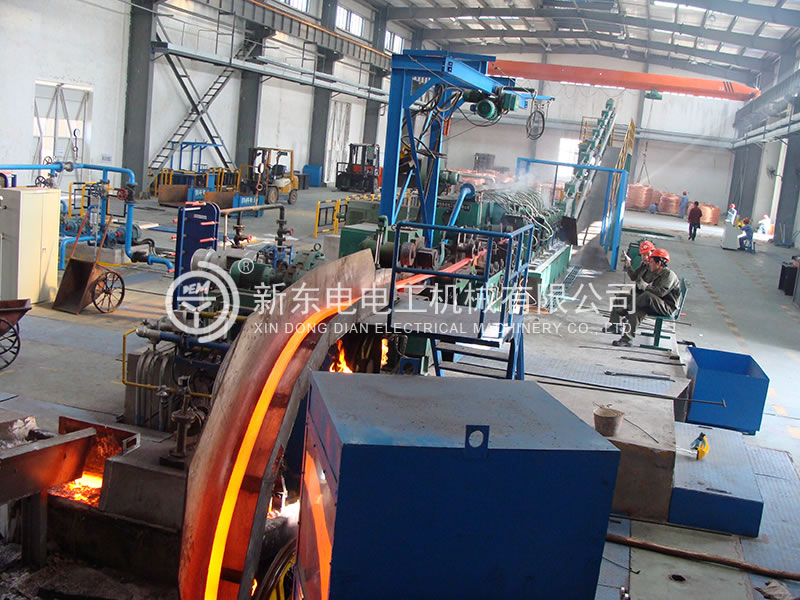本生產(chǎn)線積徐州新東電電工多年研發(fā)銅連鑄連軋技術(shù)之經(jīng)驗(yàn),綜合美國(guó)南方線材、德國(guó)SMS、意大利 PROPERZI 同類(lèi)設(shè)備的優(yōu)勢(shì)特點(diǎn),為國(guó)內(nèi)獨(dú)創(chuàng),可用100﹪廢舊紫銅作原料,采用先進(jìn)的火法精煉技術(shù),直接在連鑄連軋生產(chǎn)線上生產(chǎn)符合國(guó)標(biāo)的光亮低氧銅桿。